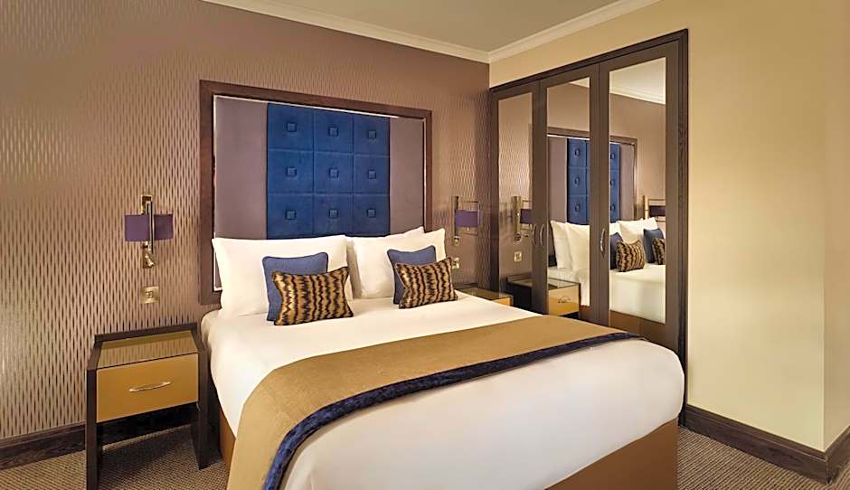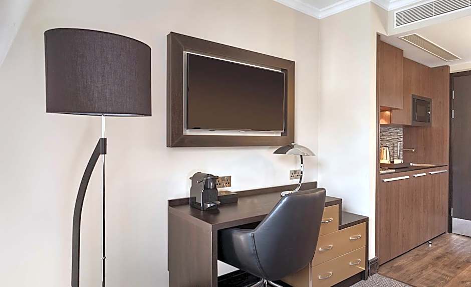 This studio features a contemporary design and contains amenities such as a Hypnos mattress, Nespresso coffee machine, 40-inch Samsung TV, a working desk area, rainfall shower and Molton Brown toiletries.